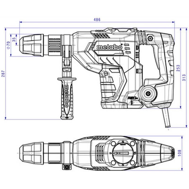 • Metabo VibraTech (MVT) s dvojitým tlmením: Oddelená rukoväť a vyvažovacia hmota pohlcujúca nárazy aktívne redukujú vibrácie, umožňujú prácu pri nepretržitom používaní zariadenia bez zaťaženia zdravia.