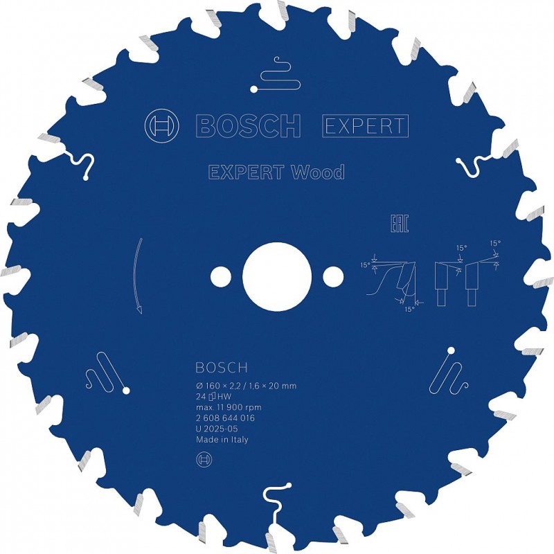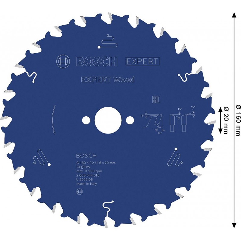 BOSCH Kotúč EXPERT Wood na drevo pre okružné píly, 160 × 2,2/1,6 × 20 mm, T24 2608644016