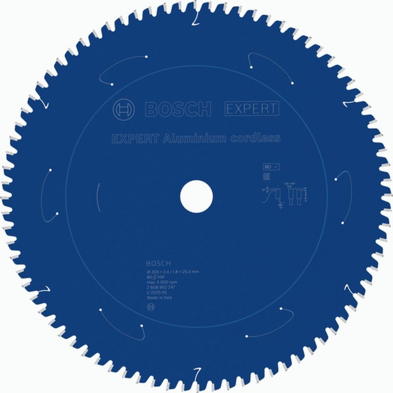 BOSCH Pílový kotúč EXPERT Aluminium cordless, 305 x 2,4/1,8 x 25,4 mm, T80 2608902247