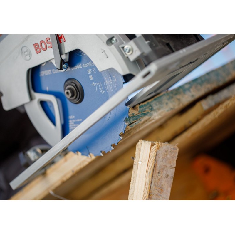 EXPERT Construct Wood cordless má naostrené jemné karbidové zuby vyrobené technológiou Bosch Carbide Technology. To znamená, že je robustný a vydrží dlhšie ako akýkoľvek iný pílový kotúč na konštrukčné drevo, ktorý máme v ponuke. Naniesli sme naň dodatočnú povrchovú úpravu, ktorá zabraňuje hromadeniu tepla a chráni ho pred koróziou. Extra tenká rezná drážka a zuby s ostrým uhlom zmenšujú trenie, a znižujú tak spotrebu energie kotúčovou pílou, vďaka čomu budete môcť pracovať dlhšie bez potreby nabíjania batérie.