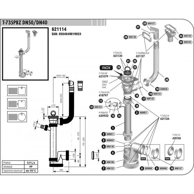 NORMA T-735 PBZ DN 50/40 sifón k drezu s prepadomObrázky sa môžu líšiť od originálneho produktu/položky.