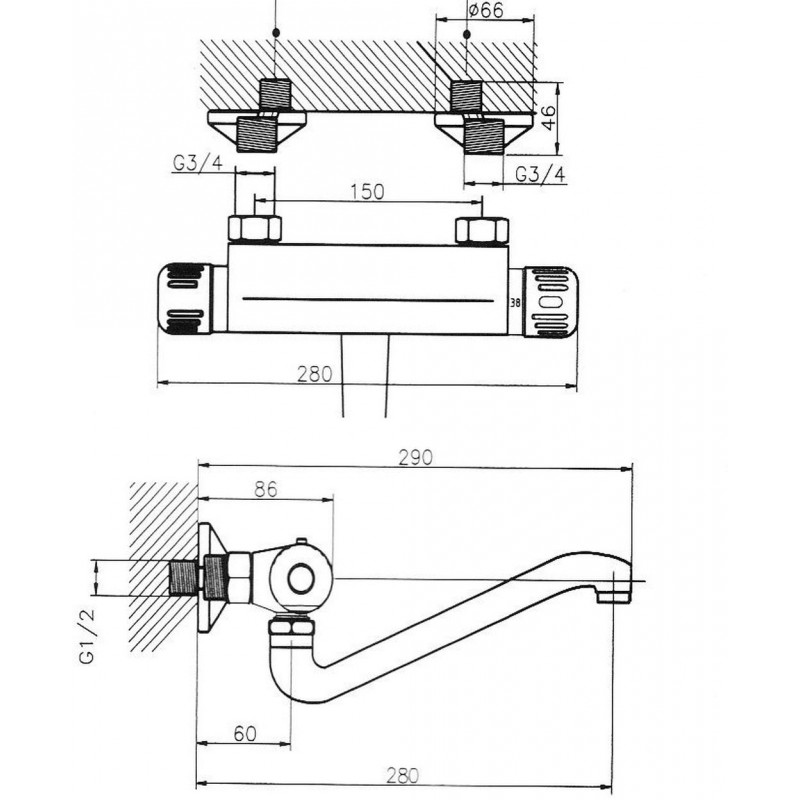 NOVASERVIS AQUAMAT termostatická baterie dřezová/umyvadlová nástěnná chrom 2670,0Provedení : chrom