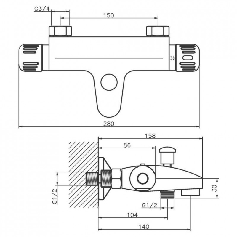 NOVASERVIS AQUAMAT termostatická baterie vanová nástěnná 150 mm chrom 2620/1,0Provedení : chrom