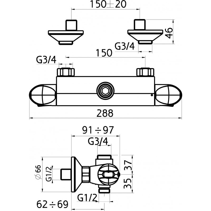 NOVASERVIS Aqualux sprchová termostatická batéria 150 mm, chróm 2762 / 1,0Typ: nástenná