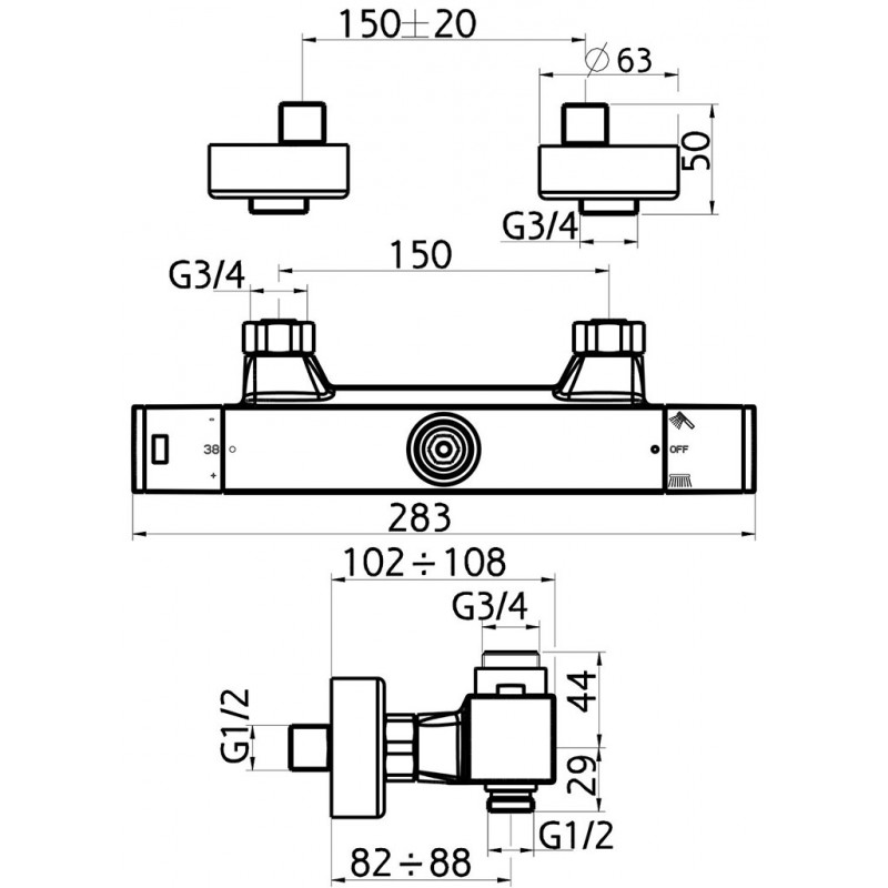 NOVASERVIS Aquasave sprchová termostatická batéria, 150 mm, chróm 2862 / 1,0Typ: nástenná