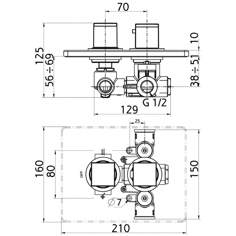 NOVASERVIS Aquasave sprchová termostatická batéria, 2-cestný ventil, chróm 2850R, 0Typ: podomietková