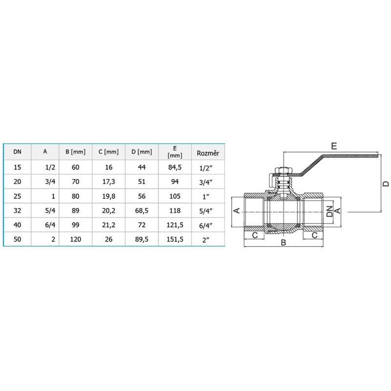 NOVASERVIS FERRO plynový guľový plnoprietokový kohút 11/4 "páka PL137/32Rozmer: 11/4 "