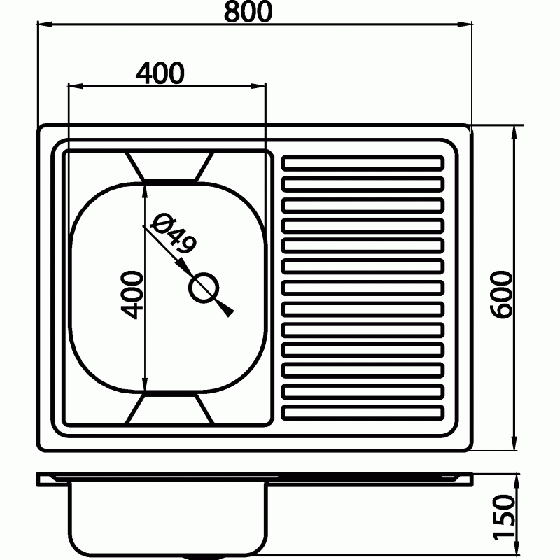 NOVASERVIS Kuchynský drez celoplošný, 600x800mm, nerez, ľavý DR60/80