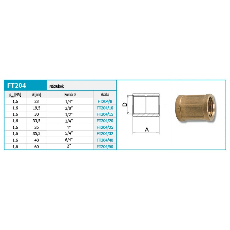 NOVASERVIS Nátrubok-hrdlo 6/4 "mosadz FT204 / 40INSTALETÉRSKÝ PROGRAM