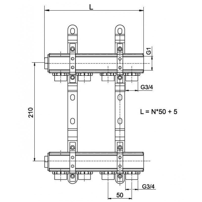 NOVASERVIS rozdeľovač so skrutkovaním jednostranný G1", 3 okruhy RPN03Prevedenie: 3 okruhy