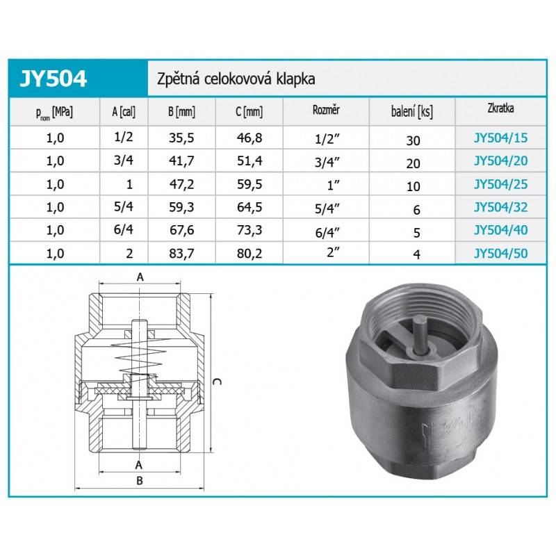 NOVASERVIS Spätná celokovová klapka 1 "JY504 / 25