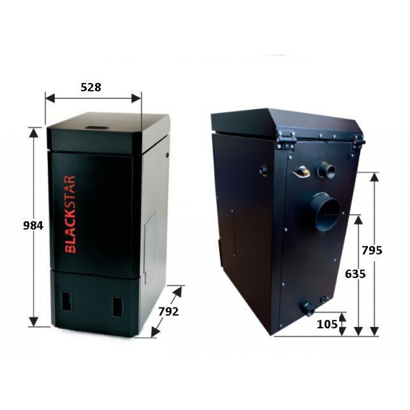 Kotol BLACK STAR je určený pre spaľovanie drevených peliet 6 - 8 mm, pre vykurovanie rodinných domov a menších objektov. Konštrukcia kotla umožňuje dosiahnuť vysokú účinnosť, nízke emisné hodnoty a nízkej spotreby paliva. Kotol môže byť umiestnený v otvorených alebo uzavretých vykurovacích systémoch.