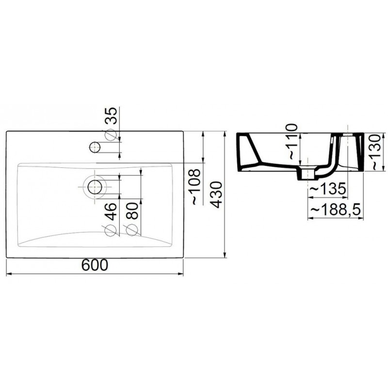 ORNE 60 Nábytkové umývadlo 60 cm, biela MK45075Keramické nábytkové umývadlo ORNE 60