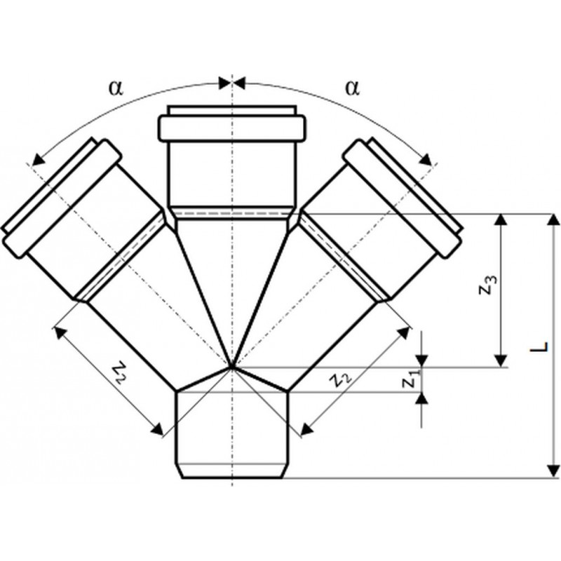 OSMA HTDA dvojitá odbočka DN 110/50/50 67°Technické údaje: