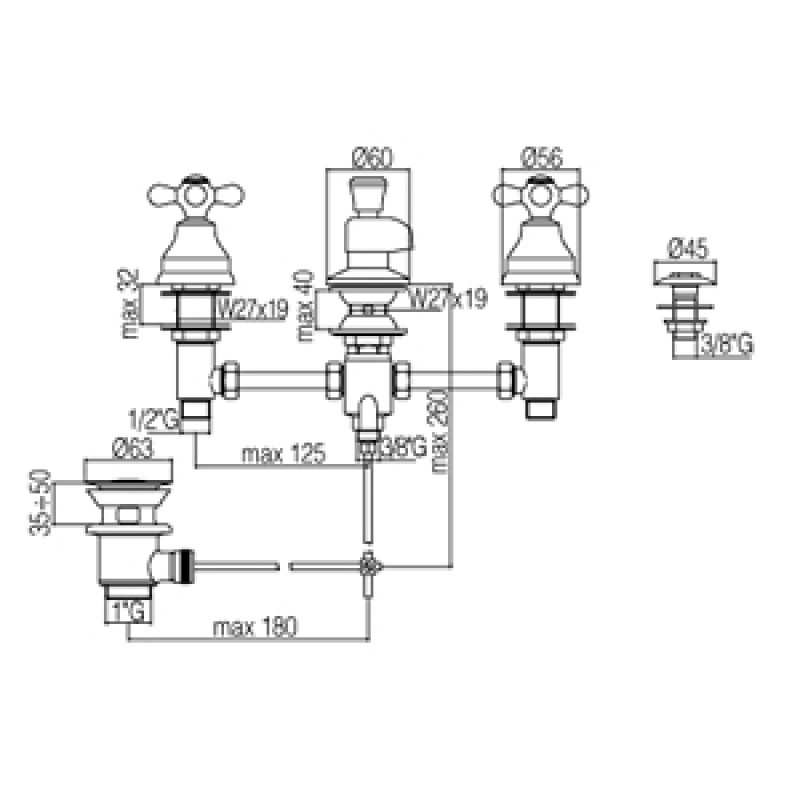Paffoni IRIS bidetová batéria so sprchou a výpusťou, chróm IRV115CRPrevedenie: chróm