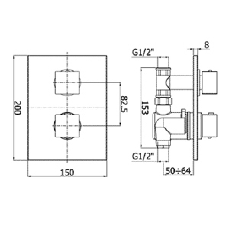 Paffoni LEVEL termostatická podomietková vaňová batéria, 3 vývody LEQ515CRPrevedenie: chróm