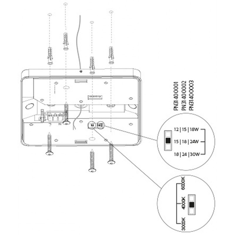 • Pomocou switche, ktorý je dostupný po zložení krytu svietidla, možno ľahko nastaviť teplotu farby a výkon / intenzitu osvetlenia (viď návod)