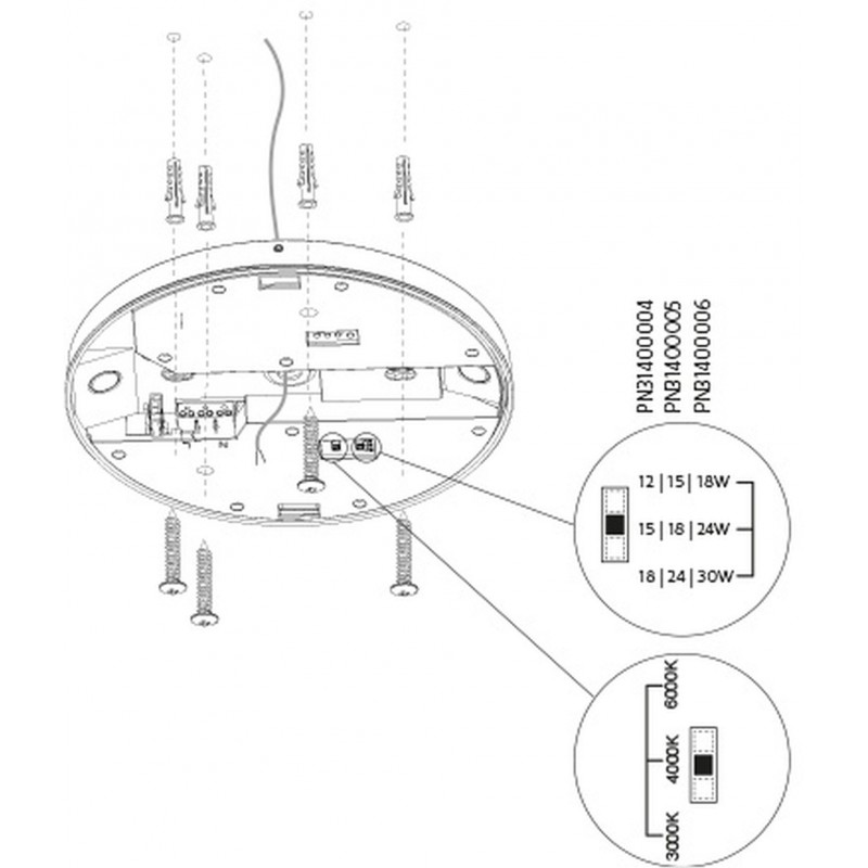 • Pomocou switche, ktorý je dostupný po zložení krytu svietidla, možno ľahko nastaviť teplotu farby a výkon / intenzitu osvetlenia (viď návod)