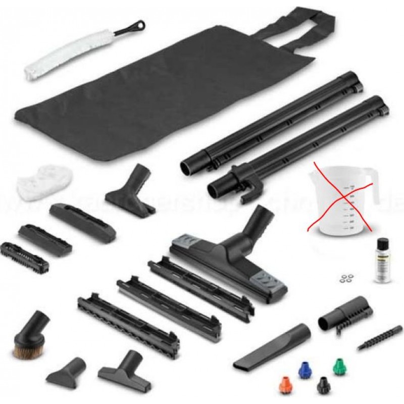 - Parná ručná hubica s funkciou sania, možno kombinovať s hubicou na okná (veľkú a malú), čistiaca nástavcom neba froté utierky