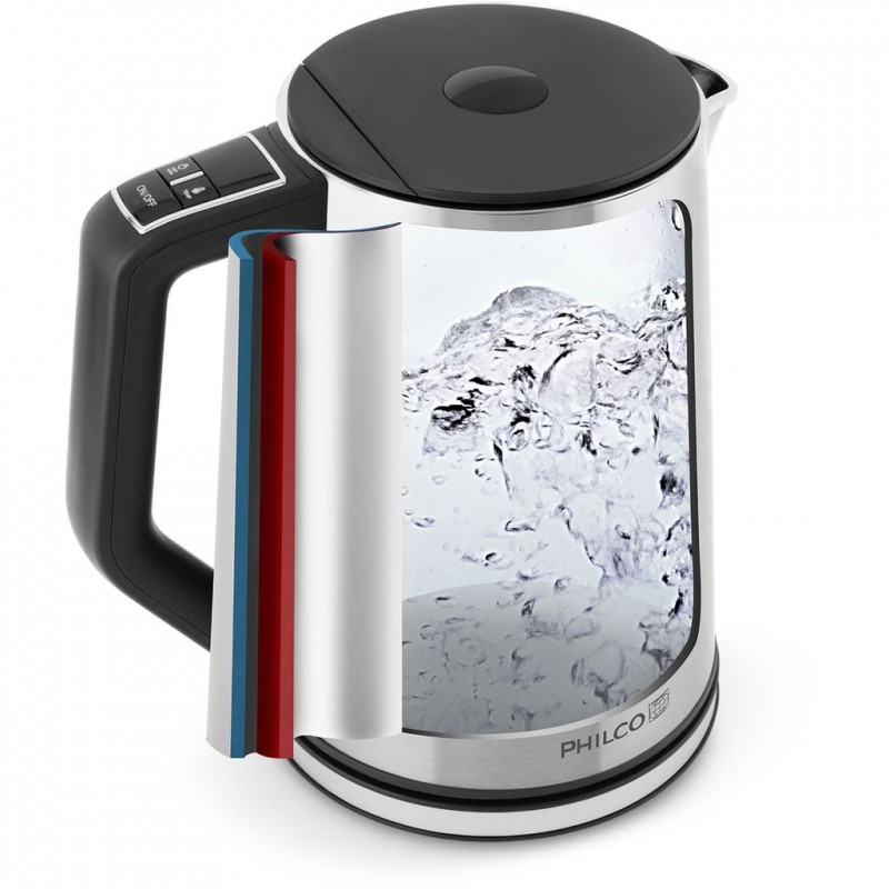 Dvojstenná kanvica PHWK 216x so stanom vaším obľúbeným každodenné pomocníkom v kuchyni na prípravu čaju alebo kávy. Jej najväčšou výhodou je dvojplášťový obal, ktorý vás ochráni pred popálením, zároveň skráti čas potrebný na dosiahnutie požadovanej teploty vody a uvarená voda potom bude tiež pomalšie chladnúť, a preto jej opätovný ohrev bude rýchlejší. Pre rôzne druhy nápojov máte možnosť nastaviť si vlastné teplotu od 35 ° C do 100 ° C s presnosťou na 5 ° C. Vďaka kanvicu PHILCO bude váš svet zase o niečo bezpečnejším miestom.