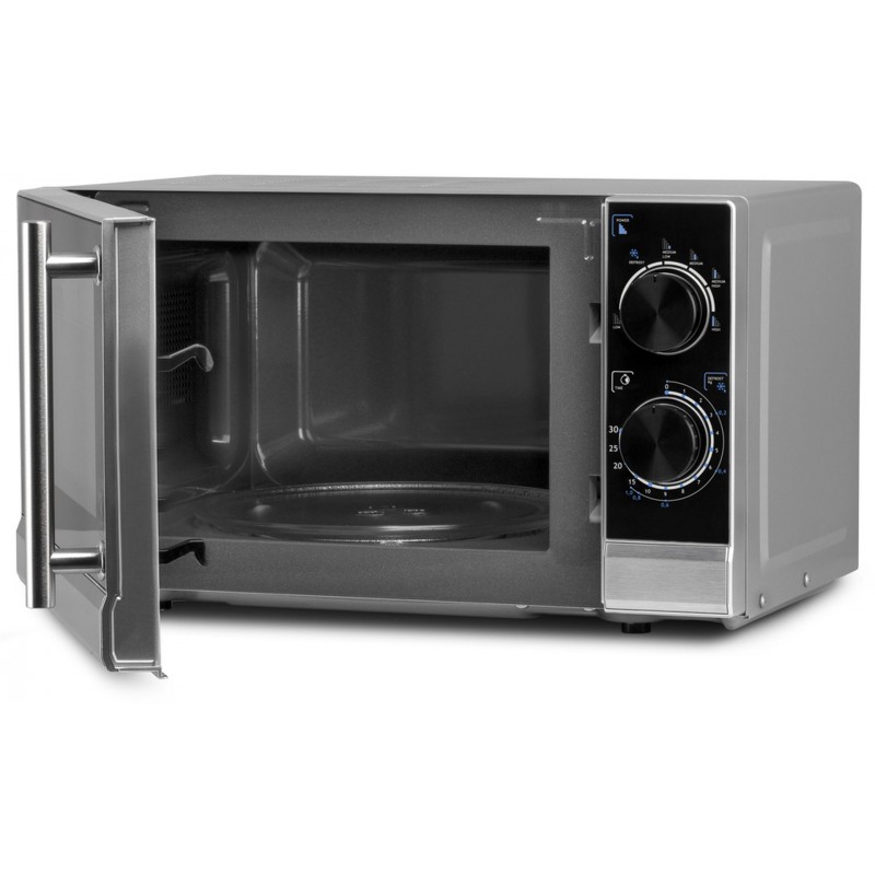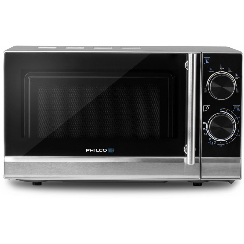 Jednoduchá a spoľahlivá mikrovlnka PHILCO, ktorá ponúka všetky základné funkcie, ktoré bežne využívate. Jedlo si veľmi ľahko, pohodlne a spoľahlivo môžete ohriať a vybrať si môžete až z 5tich úrovní ohrevu.Tiež si môžete ľahko rozmraziť potraviny z mrazničky. Orientačné dobu rozmrazovania zistíte ľahko z panela mikrovlnky. Masívne otočné gombíky sú pre veľmi pohodlné na ovládanie a zároveň je celé používanie mikrovlnky ľahké. Vnútorný priestor mikrovlnky je dostatočne veľký aby pojal bežný tanier o priemere 25 cm. Navyše vnútro mikrovlnky je ľahké udržať čistý. V neposlednom rade oceníte jej krásny kompaktný dizajn s nerezovými detailmi. Súčasní mikrovlnky je otočný tanier s priemerom 24,5 cm.