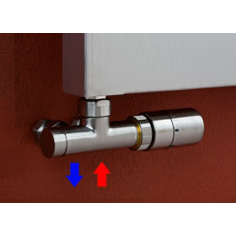 Ventil ONE - jednobodový nerezový rohový ventil s termostatickou hlavicou. Pripojovacia rozteč iba 40 mm. Vhodný pre kombinované vykurovanie.