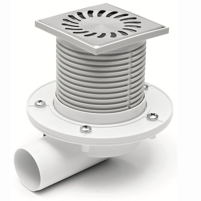 Podlahová vpusť bočná DN 50 (PVB50N-PR2) nerez 122 x 122 mm, s prírubou 425