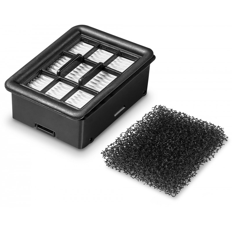 Kärcher filter set k FCV 4 je dvojstupňový filtračný systém určený pre podlahovú umývačku 3 v 1 FCV 4. Skladá sa z plochého skladaného filtra a penového filtra, ktoré zabezpečujú spoľahlivú ochranu pred vlhkosťou a vysokú účinnosť filtrácie aj tých najjemnejších častíc.