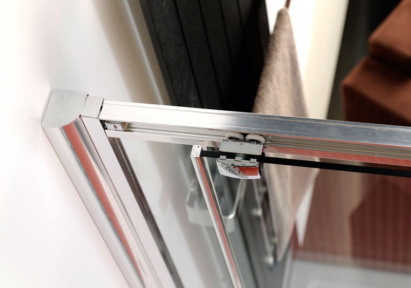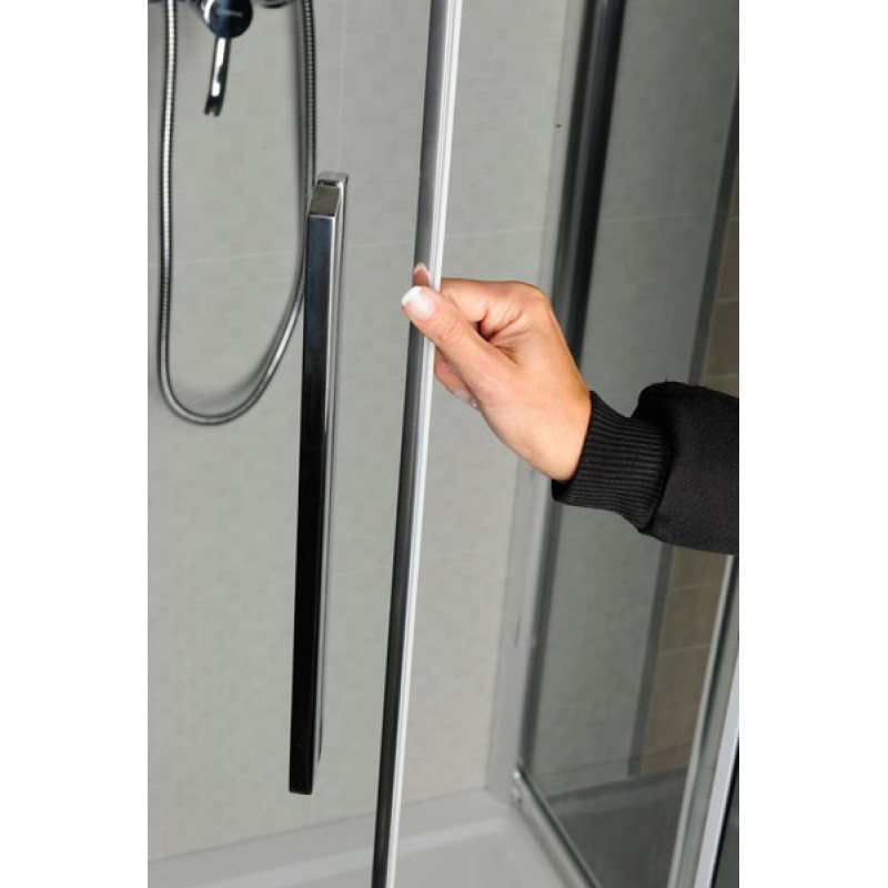 Možnosť dodatočného nalepenia chrómového držiaku osušiek priamo na sklo (predovšetkým na bočnú stenu).