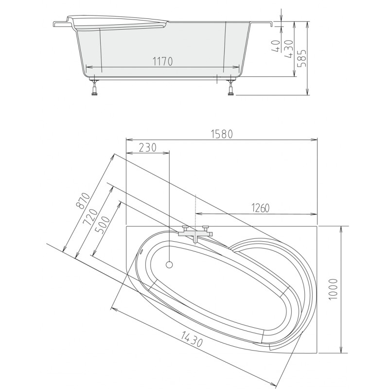 POLYSAN NAOS R asymetrická vaňa 158x100x43cm, biela 12011