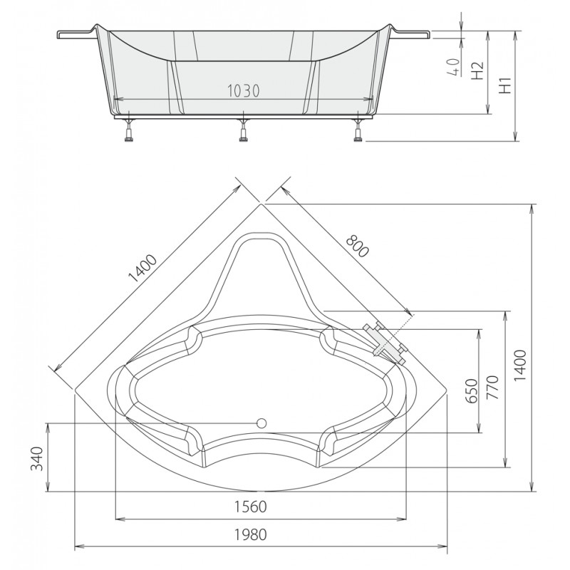 POLYSAN SIMONA rohová vaňa 140x140x44cm, biela 06111