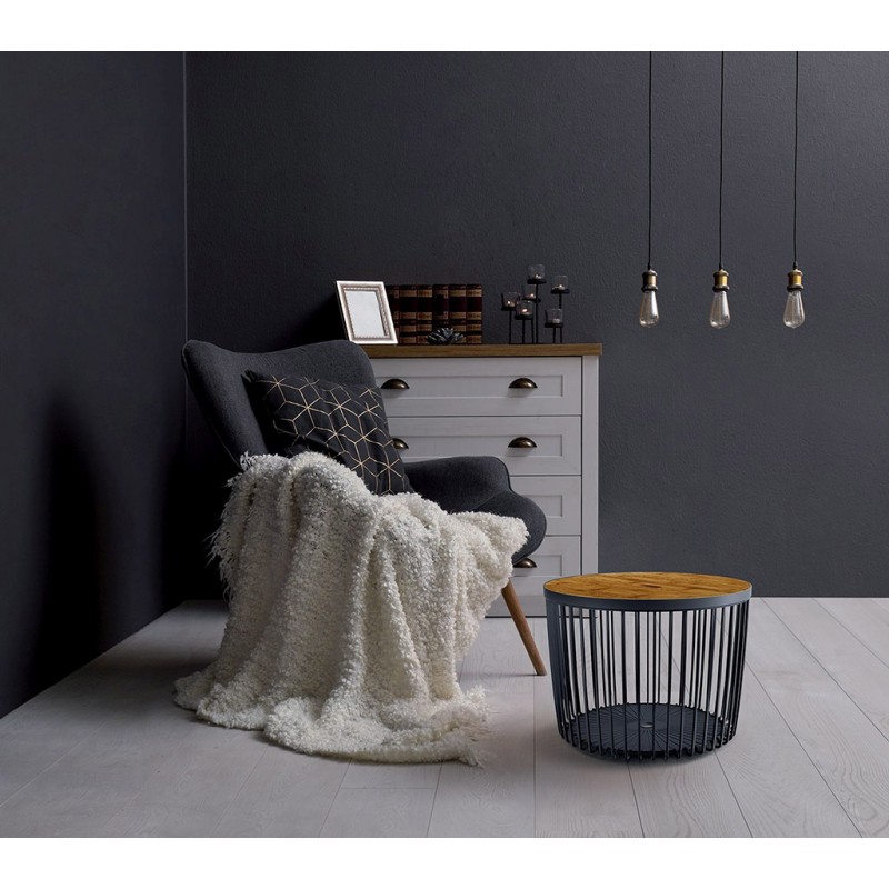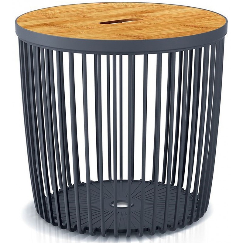Prosperplast CLUBO Univerzálny kôš / stolík s bambusovým vekom 38,6cm, antracit ICLU35T