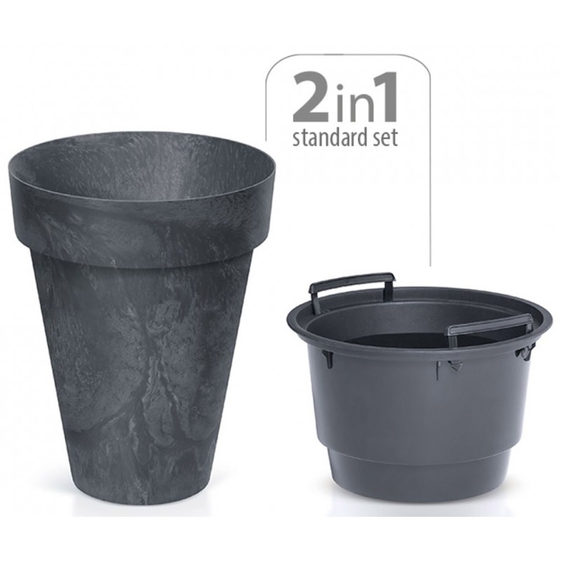 Prosperplast CUBE SLIM BETON Effect Kvetináč s vkladom 46,1cm, 55l, marengo DCUS460E