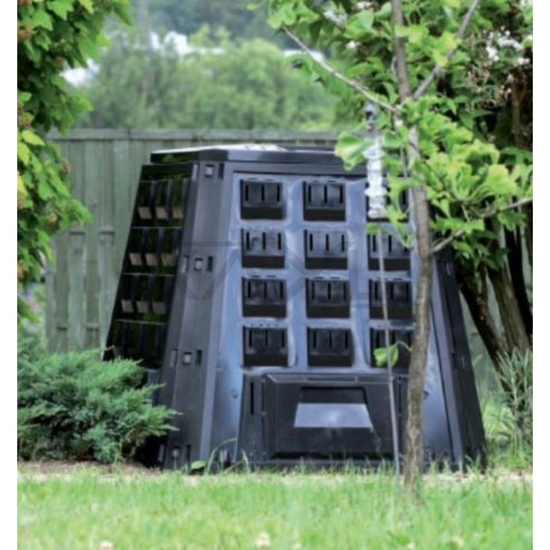 Kompostér EVOGREEN s objemom 420 litrov využijete pre záhrady o ploche do veľkosti 400 štvorcových metrov. Kompostér je vybavený odvetrávacími otvormi pre správnu cirkuláciu vzduchu a zabezpečenie správnych podmienok pre tvorbu kompostu. Jeho prevedenie bez dna umožňuje pôdnym organizmom priamy prístup k biologicky rozložitelnému odpadu. Kompostér je v dolnej časti vybavený otvorom pre vyberanie vzniknutého kompostu.