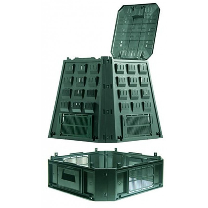 Kompostér je vyrobený z recyklovateľného plastu, ktorý je odolný voči atmosférickým vplyvom. Kompostéry v záhrade zaberú minimálny priestor. Kompostér nemá dno a priamy styk s pôdou tak umožňuje voľný prístup červom, ktorí sa podieľajú na procese dekompozície a na tvorbe plnohodnotného, na živiny bohatého humusu. V dolnej časti kompostéra je otvor pre vyberanie kompostu.- Jedinečný tvar umožňujúci cirkuláciu vzduchu, ktorý urýchľuje kompostovanie