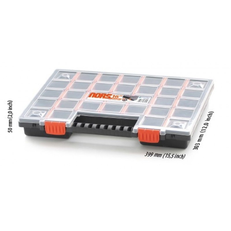 Univerzálny organizéry z radu Nor majú regulovateľné priehradky. Toto riešenie umožňuje vybrať si rozmer a množstvo priehradok podľa aktuálnej potreby. Priehľadný kryt umožňuje nahliadnuť kedykoľvek dovnútra bez nutnosti otvárania. Jednoduché prenášanie zaisťuje pevné držadlo. Maximálny počet priehradiek: 32 ksparametre: