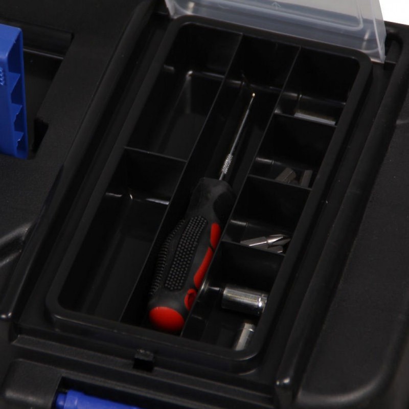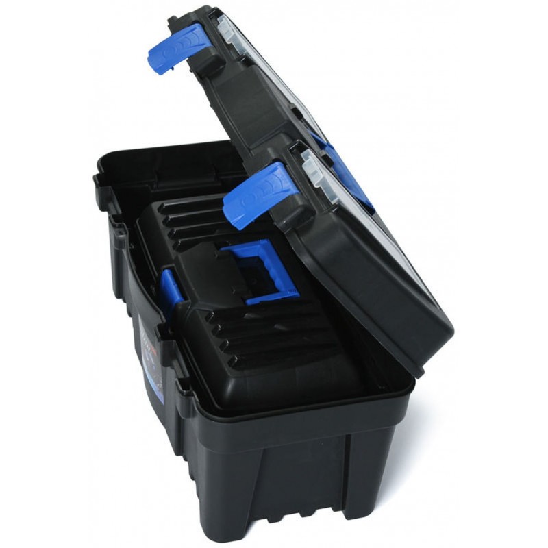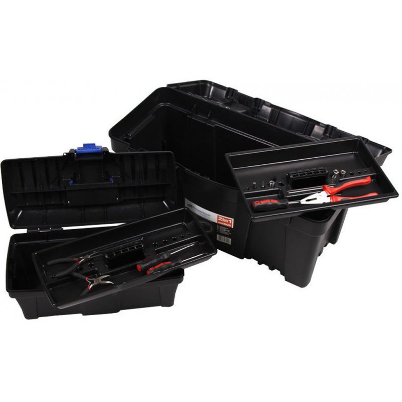 Sada 2 kufrov na náradie Caliber, ktoré sa zmestia jeden do druhého. Oba boxy majú vnútorné odnímateľnou priehradku. Väčší kufor má navyše 2 praktické organizéry na veku.Box je vyrobený z vysoko kvalitného plastu, ktorý sa vyznačuje vysokou pevnosťou a odolnosťou voči mechanickému poškodeniu.