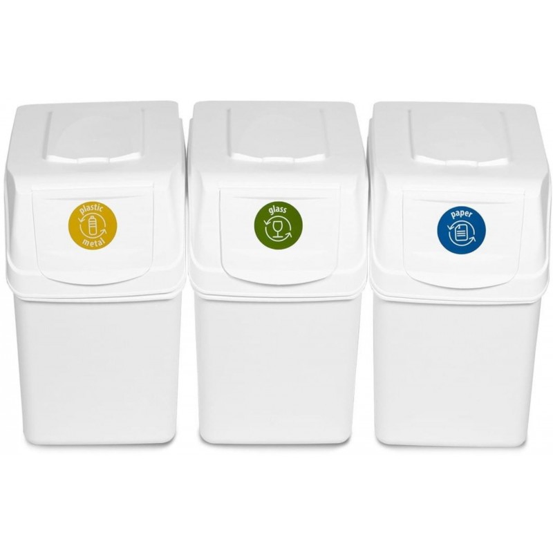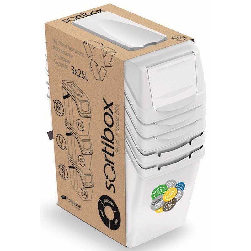 Prosperplast SORTIBOX II Sada 3 odpadkových košov 3x25l, biela ISWB25S3