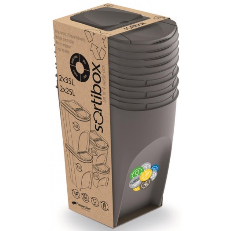 Prosperplast SORTIBOX Sada 4 odpadkových košov, 2x25l a 2x35l, šedý kameň IKWBMS4