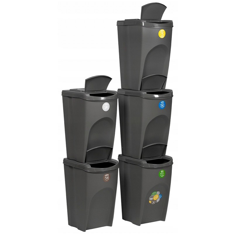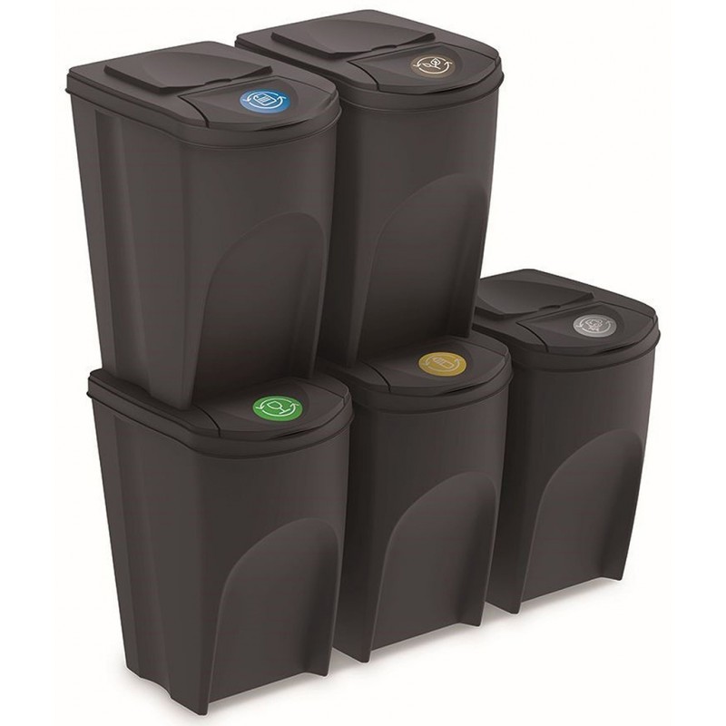Prosperplast SORTIBOX Sada 5 odpadkových košov, 5x35l, antracit IKWB35S5