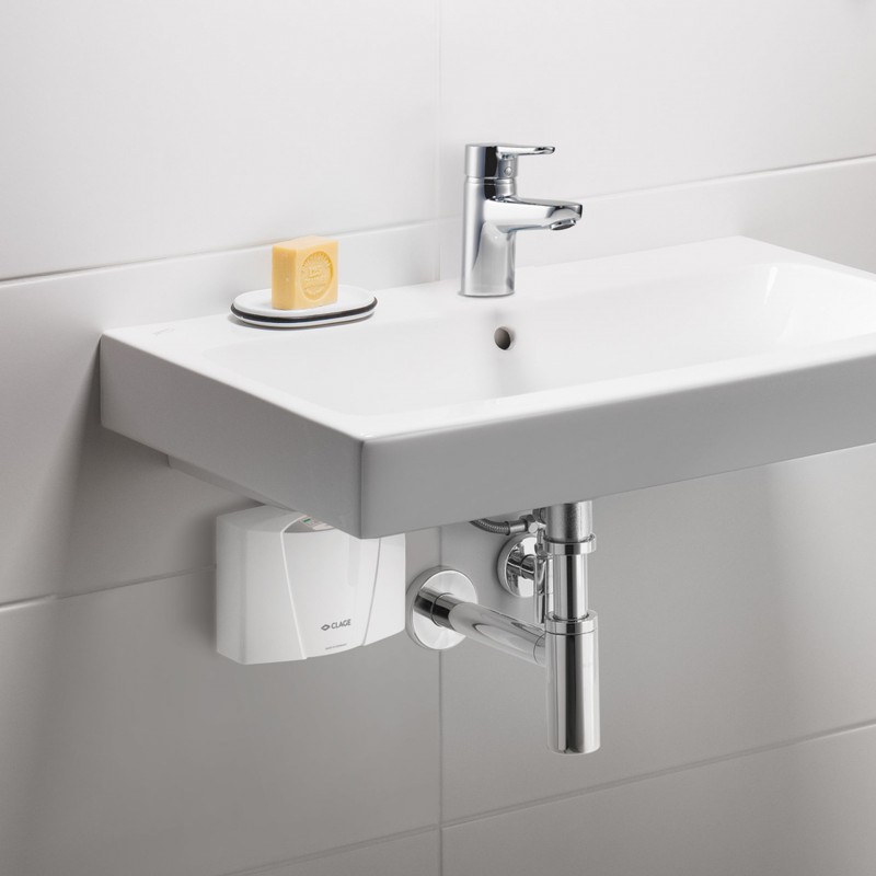 CLAGE MCX 3 je kompaktný elektronicky riadený prietokový ohrievač vody určený na úspornú prípravu teplej vody priamo pri umývadle. Voda sa zohrieva okamžite počas prietoku – bez zásobníka a bez pohotovostných strát, čím sa minimalizujú tepelné straty v potrubí a znižuje spotreba energie.