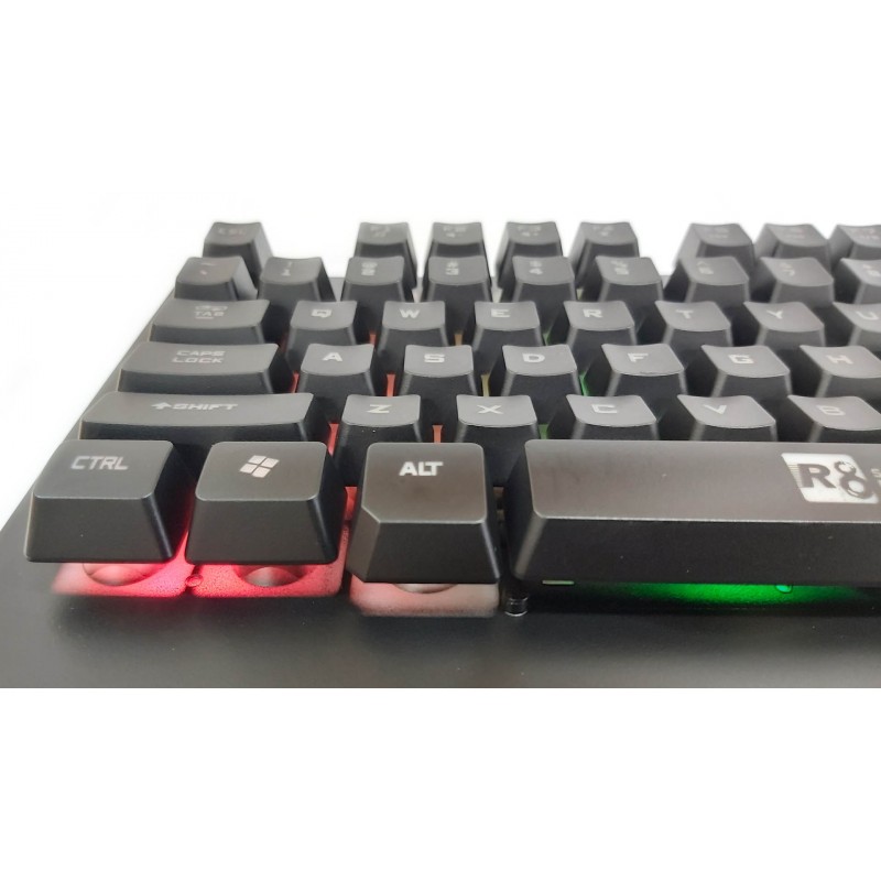 R8 Gamer herná klávesnica KB1818Podsvietená herná klávesnica od R8 s moderným dizajnom. Hladký, lineárny chod s rýchlou odozvou 1000Hz / 1ms. Obsahuje praktické podsvietenie.