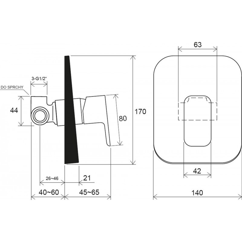 - vhodná: do sprchových kútov s jednou sprchou alebo k vani (napr. Vani 10 °) s napúšťaním prepadom, bez možnosti sprchovania