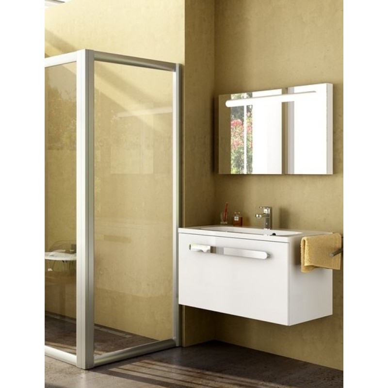 Dizajn výrobku nie je rušený žiadnymi zvislými vnútornými profily. Je v podstate tvorený len čírymi bezpečnostnými sklami hrúbky 6 mm zavesenými do elegantných kovovo lesklých vodiacich profilov. Lesklé prevedenie rámu môžete zladiť s batériami a ďalšími kovovými doplnkami v kúpeľni. Ľúbivý odľahčený dizajn.