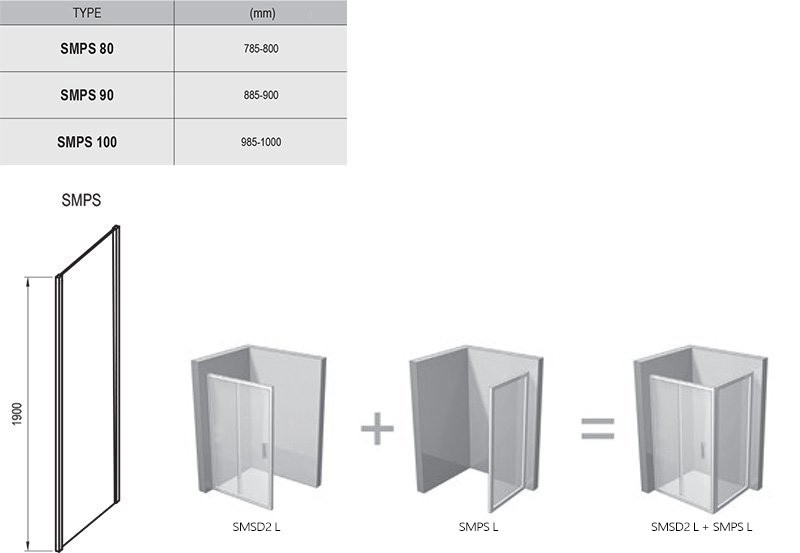 Ľavá varianta pevnej steny sa kombinuje s ľavou variantou sprchových dverí SMSD2 a naopak.