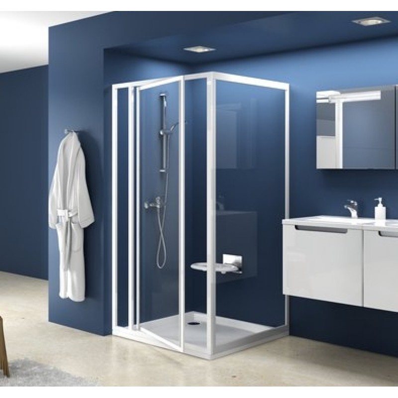 * Otočné pivotové sprchové dvere SDOP sú vhodné do niky, dajú sa kombinovať s pevnou sprchovou stenou PSS k vytvoreniu sprchovacieho kúta tvaru "L". Pomocou dvoch pevných stien a sprchových dverí vytvoríte sprchový kút v tvare "U".