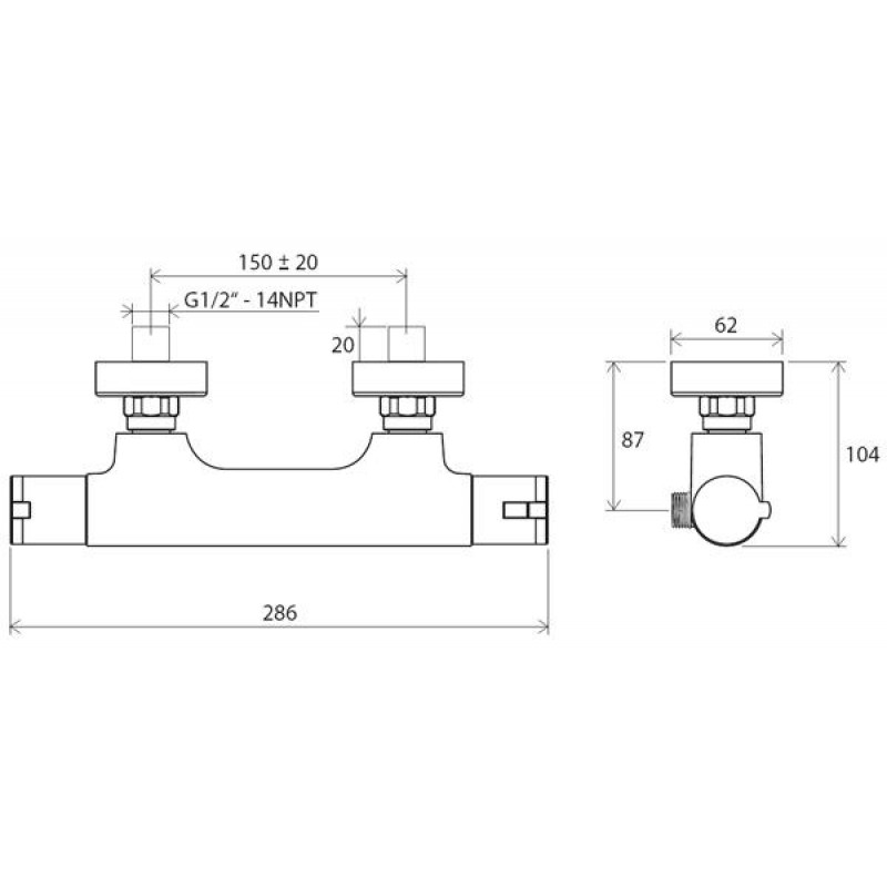 RAVAK TERMO TE 032.00/150 Sprchová termostatická nástenná batéria X070034 Technické parametre:- rozteč batérie: 150 mm