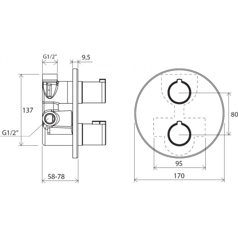 RAVAK Termo TE 061.00 termostatická podomietková batéria s prepínačom X070037