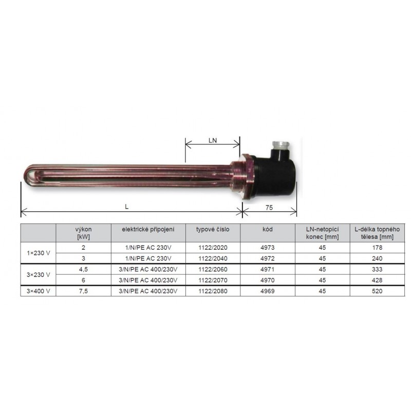 REGULUS vykurovacie teleso 6,0 kW, M48 x 2 pre elektrokotla s núteným obehom 4970