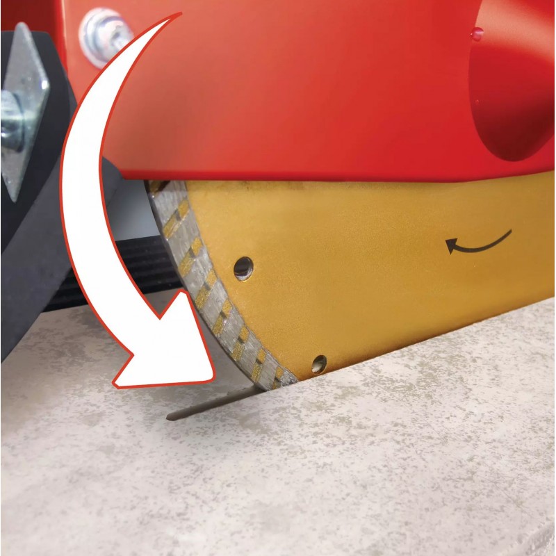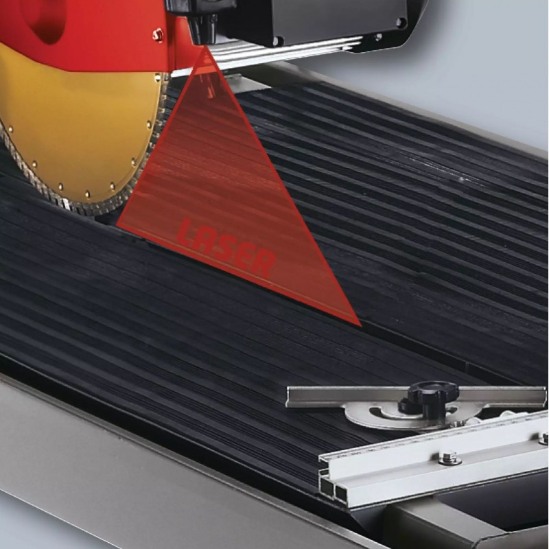 Odnímateľný laser uľahčuje presné rezanie tým, že na obrobok premieta líniu rezu. Vodu na chladenie rezného kotúča dopravuje stroj z masívnej oceľovej vane na zachytávanie vody pomocou integrovaného vodného čerpadla.